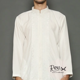 Baju Koko Putih Bordir Senada REV 038 Tangan Panjang
