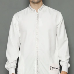 KOKO PRIA PUTIH LENGAN PANJANG MANSET BORDIR REV 08 SIMPLE DAN ELEGAN.