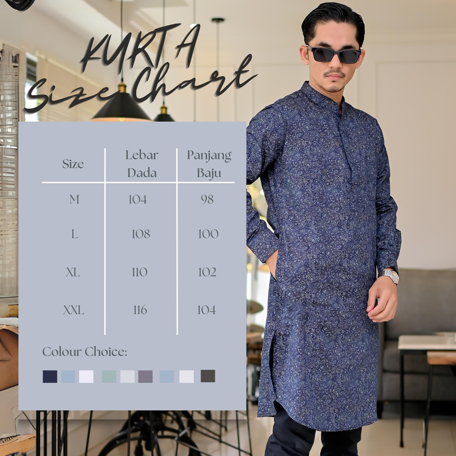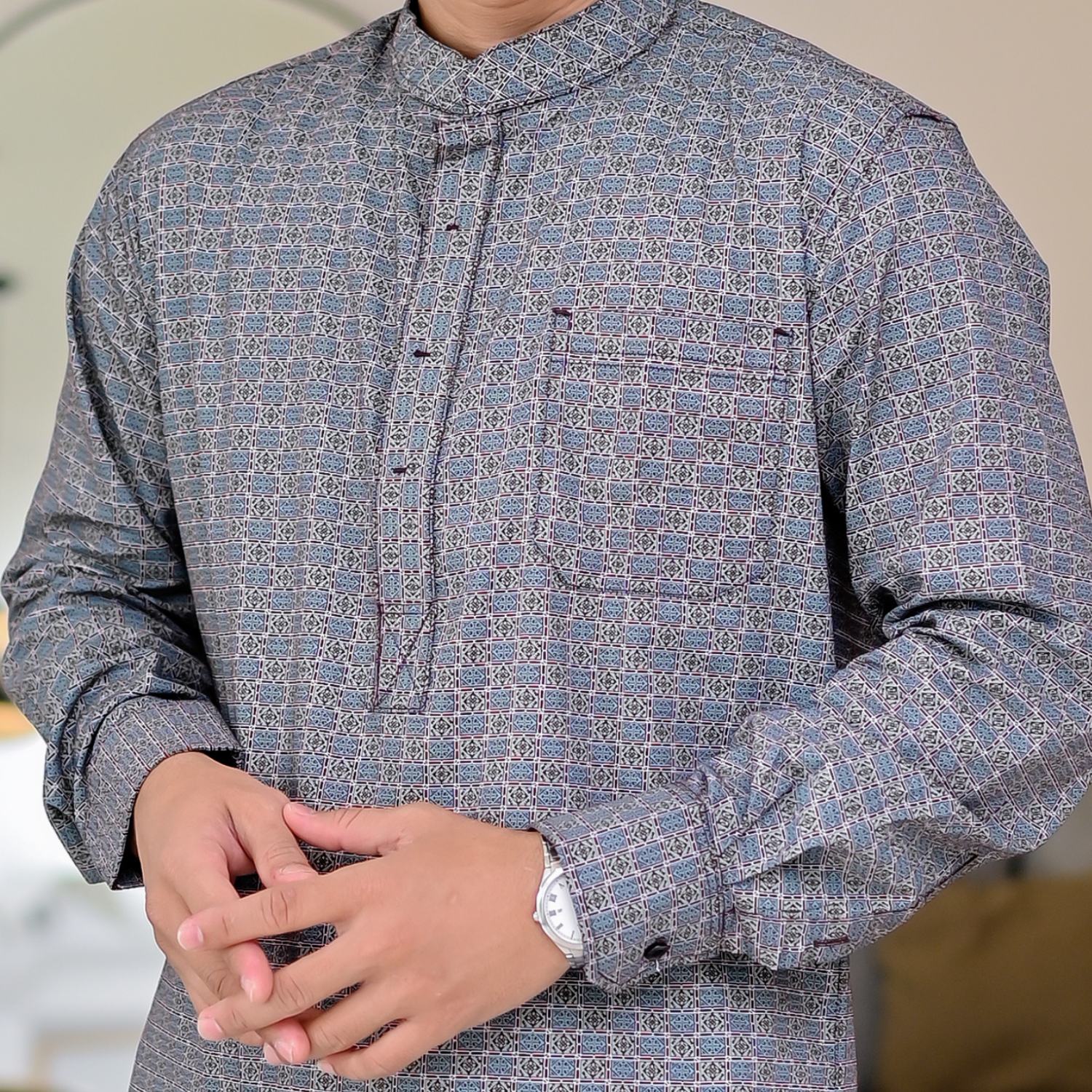Baju koko kurta ini terbuat dari katun 60s yang lembut dan nyaman. Dengan motif mewah, seperti pola geometris atau floral, serta warna kaya seperti navy dan emerald, dan banyak warna lainnya, baju ini memberikan kesan elegan.