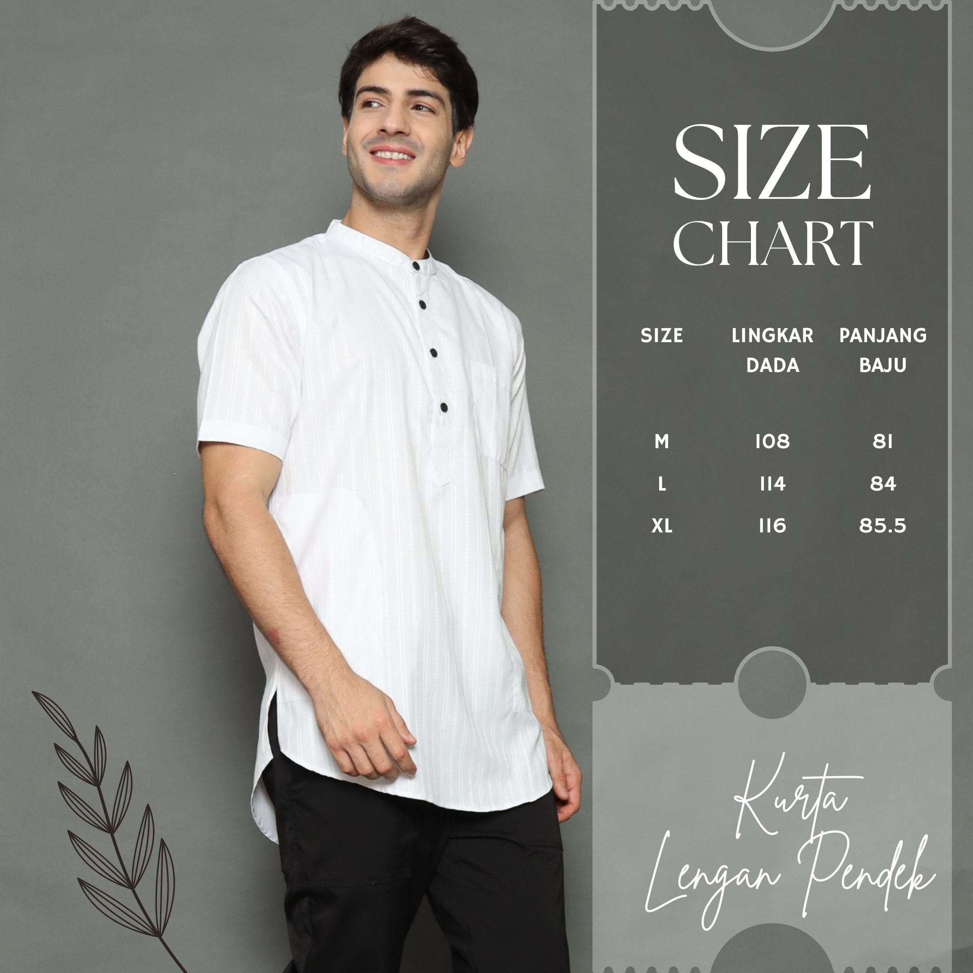 Size Chart Koko Kurta Pria Lengan Pendek Motif Salur