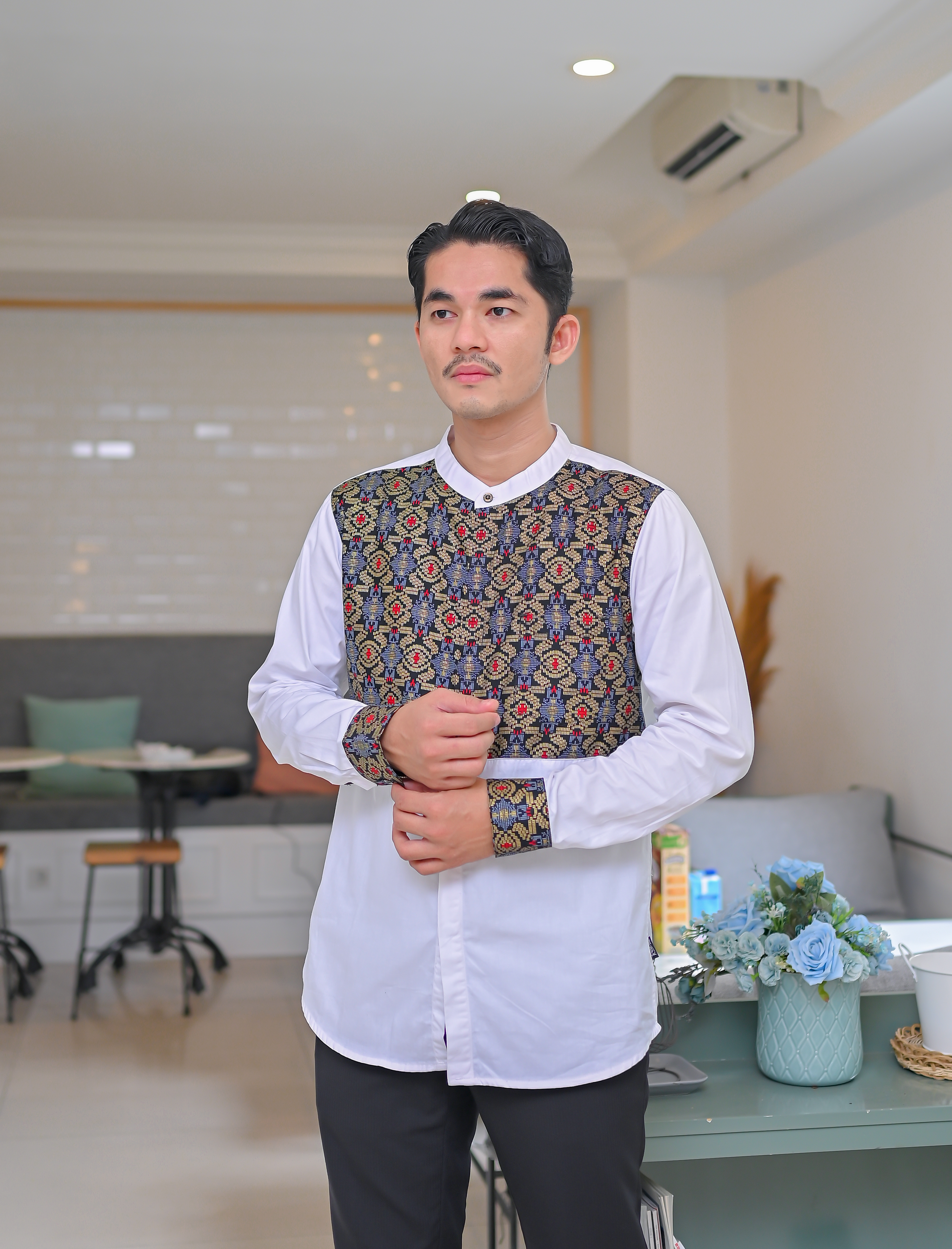 - Kemko ini memadukan desain lengan panjang klasik dengan kombinasi motif batik eksklusif, memberikan nuansa tradisional yang unik dan tetap modern.