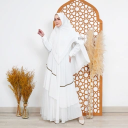 -Gamis Syar'i Set Khimar List Emas Tile-